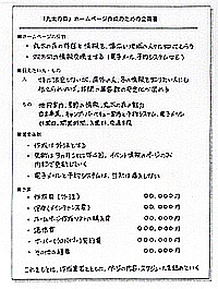 | 予算案まで進んだところで、企画書としてまとめてみました。次のステップで、どんなページにするかを考えていくときの参考になります。 | ||
