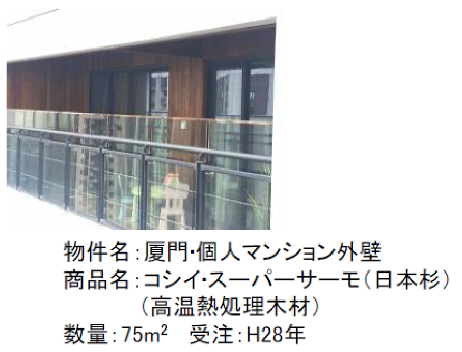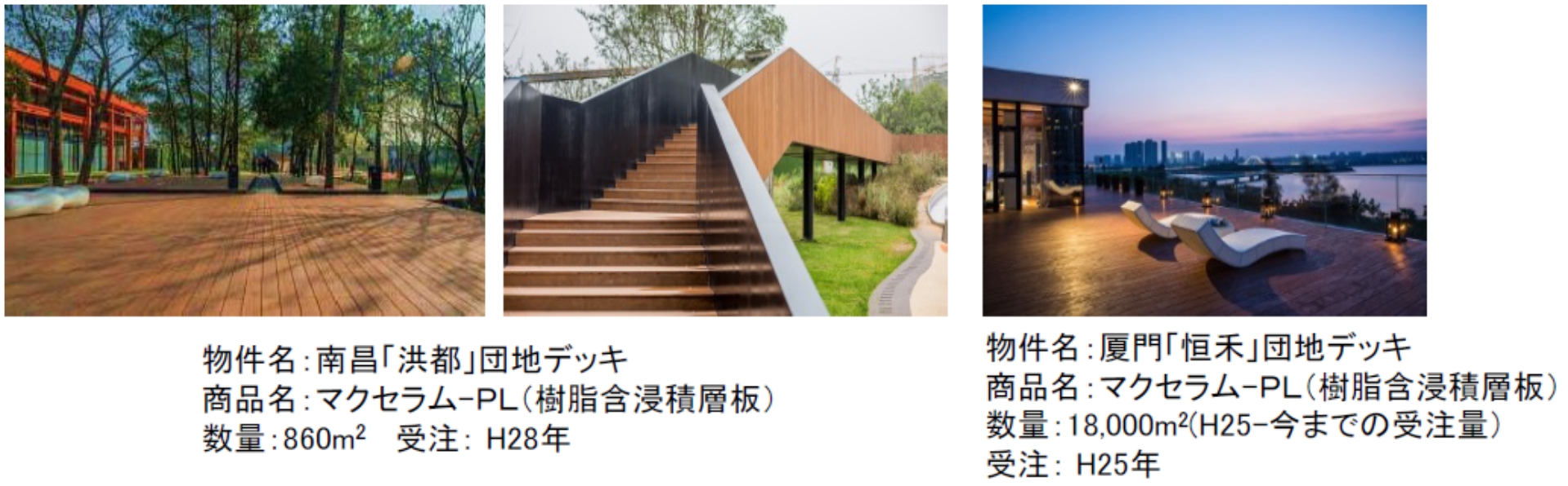 越井木材工業(株)(大阪府)は、樹脂含浸積層材など、耐久性に優れた木製外装材を中国に輸出しています。