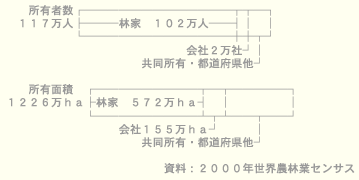 2000年世界農林業センサスによると、民有林のうち、林家と呼ばれる