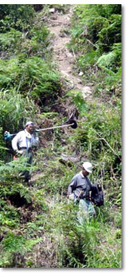 壁のように急な斜面でも、あっという間におりてくることができる。(現場は登りよりも降りるほうが数段恐ろしい。)さすが。 |